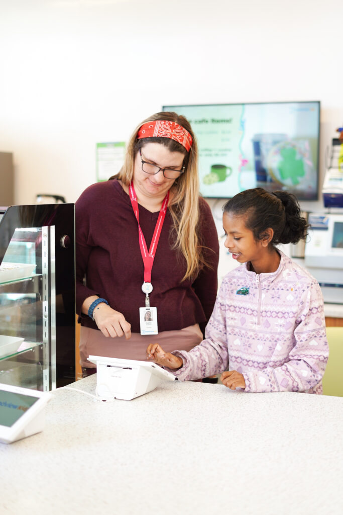 Once S aged out of the Grandview Kids services and entered the school system, she continued to receive school-based rehabilitation services (SBRS). Sharon shares that over the years she has learned to be S’s voice, advocating for her, especially during COVID-19 lockdowns, when she assumed the unofficial title of “educational assistant.” As a social butterfly, she found that those years of isolation and social distancing had a profound effect on her personality, and returning to the physical classroom was a slow adjustment.