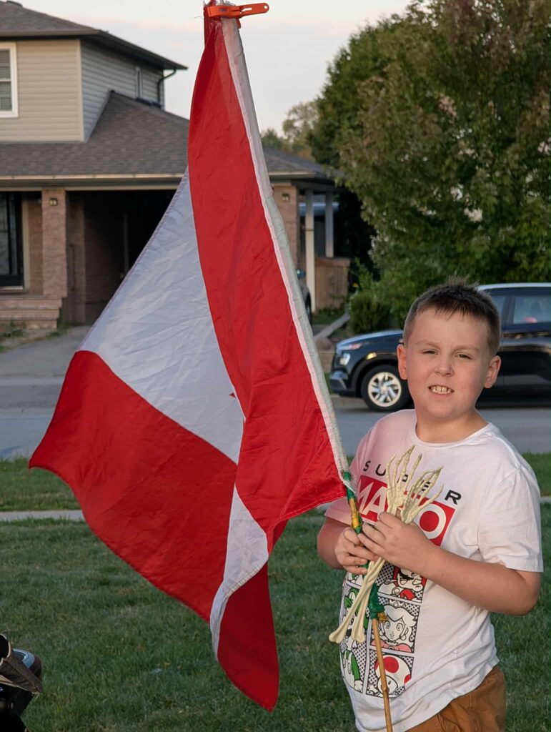 Kaleb’s family has been his greatest source of strength. He lives with grandparents, Papa Kevin and Nana Linda. Nana was there when Kaleb was born and even cut his umbilical cord. She continues to attend every appointment and advocate fiercely for her grandson. Papa works full-time but took the time to build a sensory room at home to support Kaleb’s needs. Even Kaleb’s uncle Dylan, a member of the Canadian Armed Forces stationed in Kingston but who lives in Napanee, never hesitates to take time off work to drive him to appointments at SickKids Hospital in Toronto. This tight-knit family team, which also includes his aunt Ashley, cousin Penelope, and baby Tatum, keeps Kaleb supported, grounded, and loved.
